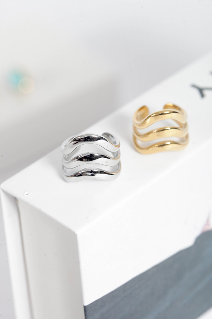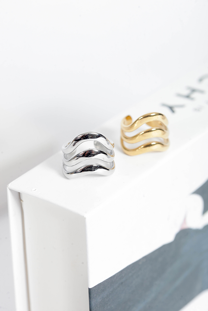 Με εντυπωσιακή γραμμή και fluid look, τα κυματιστά δαχτυλίδια από ατσάλι ξεχωρίζουν — ιδανικά για καθημερινό στιλ με άποψη.