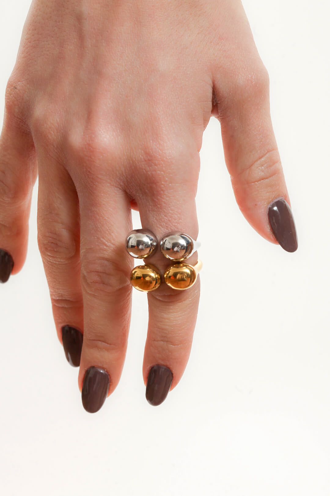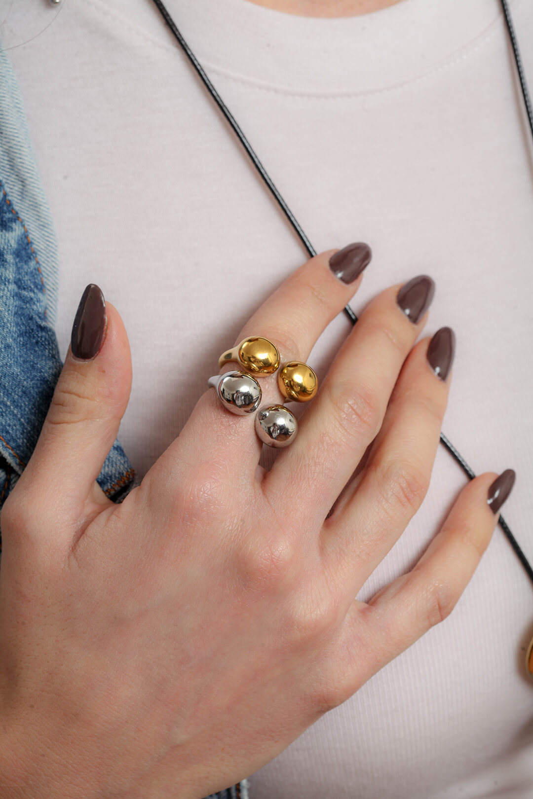 Δαχτυλίδι με σφαιρικές άκρες που προσθέτουν μια διακριτική γλύκα σε ένα κατά τα άλλα minimal design – ακριβώς αρκετή για να το κάνουν αξέχαστο. Μικρή λεπτομέρεια, μεγάλη διαφορά. Από ανοξείδωτο ατσάλι, ανθεκτικό και υποαλλεργικό. Διατίθεται σε φυσική χρυσή ή ασημένια απόχρωση.