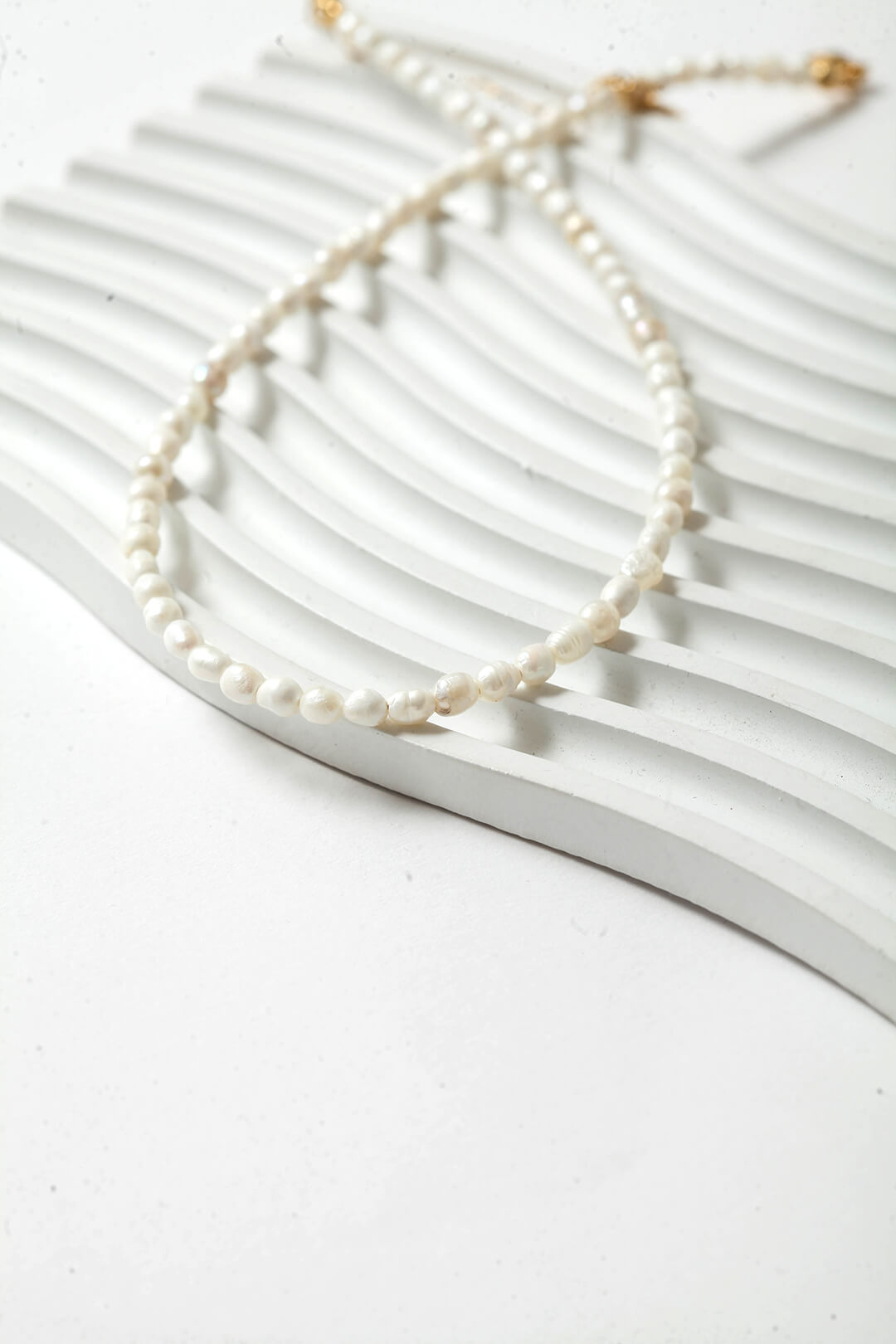 Κολιέ με αυθεντικά μαργαριτάρια γλυκού νερού έχει εκείνη τη φυσική, ατελή ομορφιά που καμία συνθετική πέρλα δεν μπορεί να μιμηθεί. Κάθε μαργαριτάρι είναι μοναδικό — ακριβώς όπως εκείνη που θα το φορέσει. Χρυσό κούμπωμα από ανοξείδωτο ατσάλι, μήκος 35εκ. με 5εκ. προέκταση.