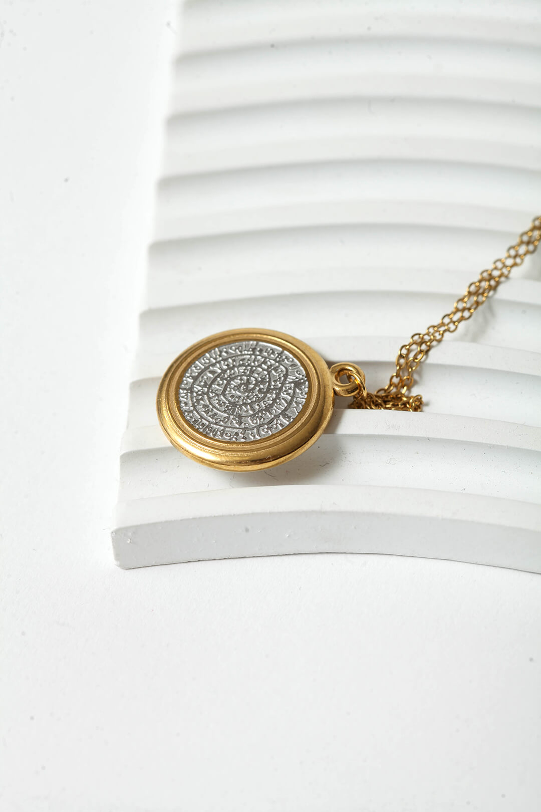 Ο Δίσκος της Φαιστού — ένα αριστούργημα του μινωικού πολιτισμού, τώρα στο λαιμό σου! Κρέμεται σε ατσάλινη αλυσίδα 40εκ.
