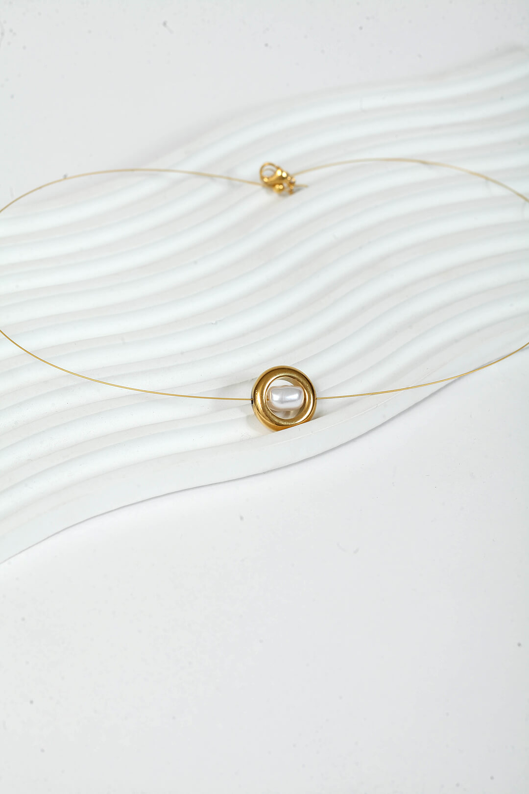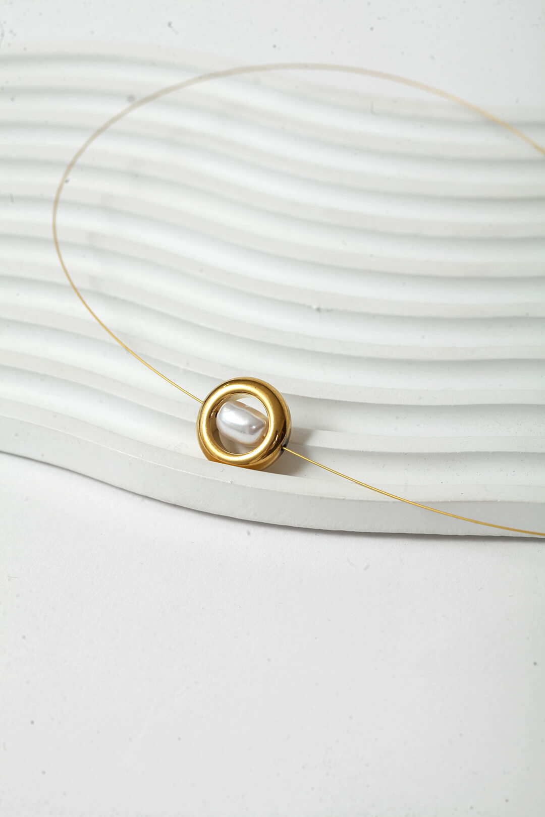 Ο χρυσός κύκλος από αιματίτη αγκαλιάζει μια αυθεντική πέρλα γλυκού νερού πάνω σε λεπτή χρυσή ντίζα. Δύο από τα πιο διαχρονικά υλικά στον κόσμο της κοσμηματοποιίας, σε έναν συνδυασμό που είναι ταυτόχρονα σύγχρονος και κλασικός.