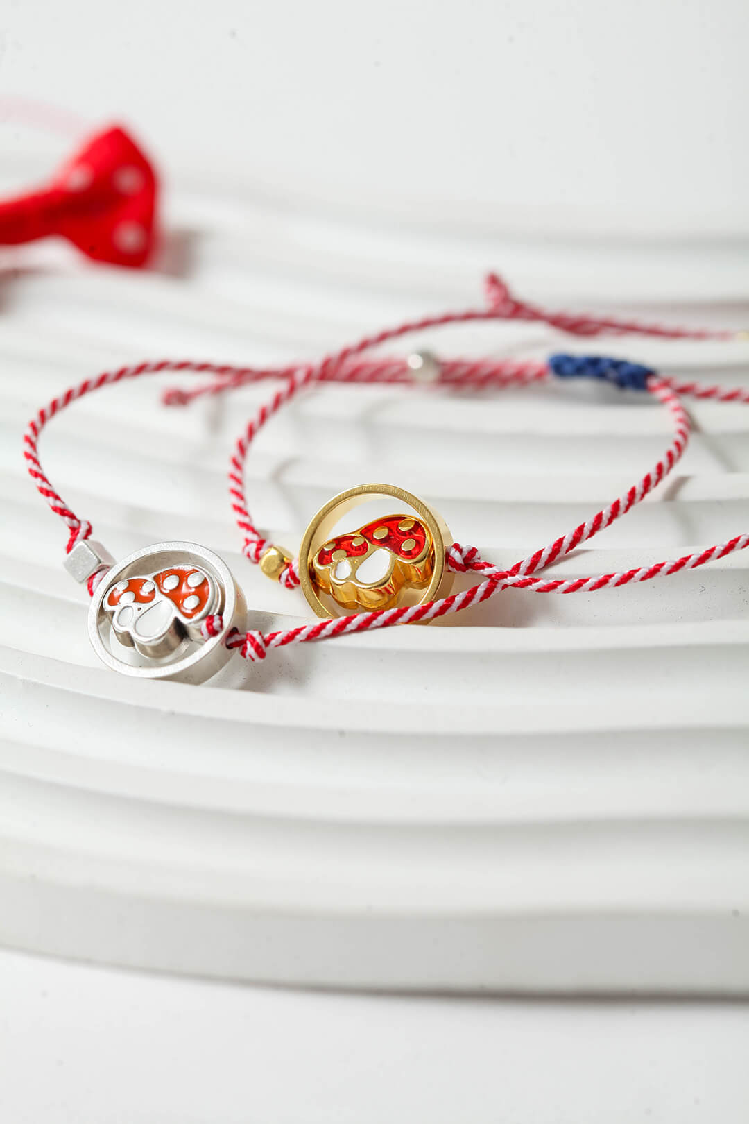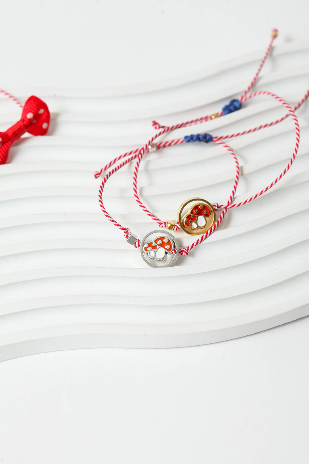 Λίγο παιχνιδιάρικο, λίγο μαγικό — και απολύτως τάση. Το μανιτάρι με το λεπτό χρυσό ή ασημί περίγραμμά του είναι ένα μαρτάκι που κερδίζει αμέσως μια θέση στην καρδιά σου. Το κορδόνι μακραμέ προσθέτει μια χειροποίητη ζεστασιά που το κάνει ακόμα πιο ξεχωριστό. Διατίθεται σε χρυσό και ασημί.