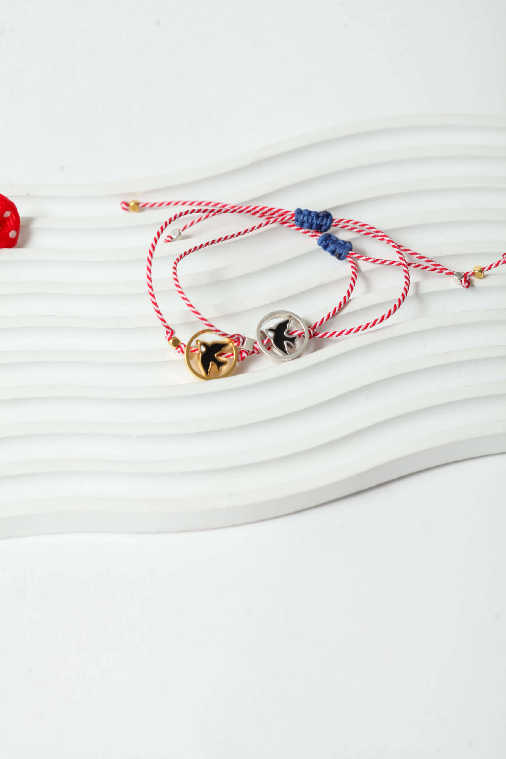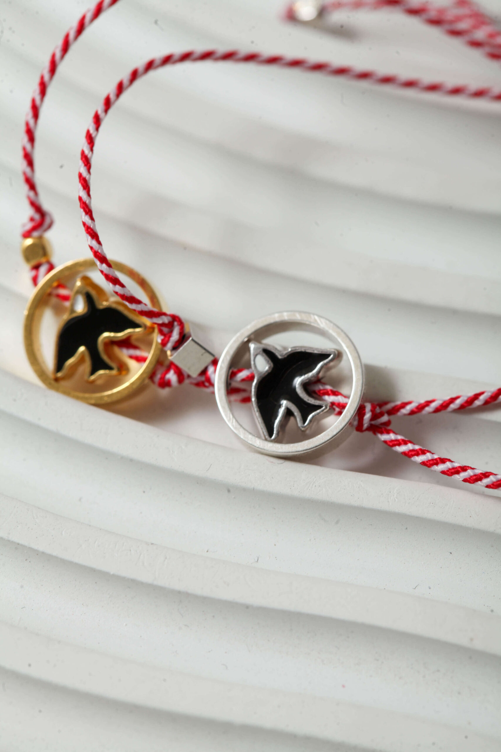 Το χελιδόνι φέρνει την άνοιξη — και λίγη από τη χαρά της μαζί του. Με το λεπτό χρυσό ή ασημί περίγραμμά του, είναι ένα μαρτάκι που νιώθεις πως πετά στον καρπό σου. Το κορδόνι μακραμέ προσθέτει μια χειροποίητη απαλότητα που το κάνει ακόμα πιο αγαπητό.