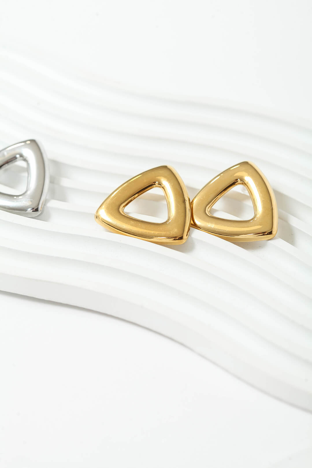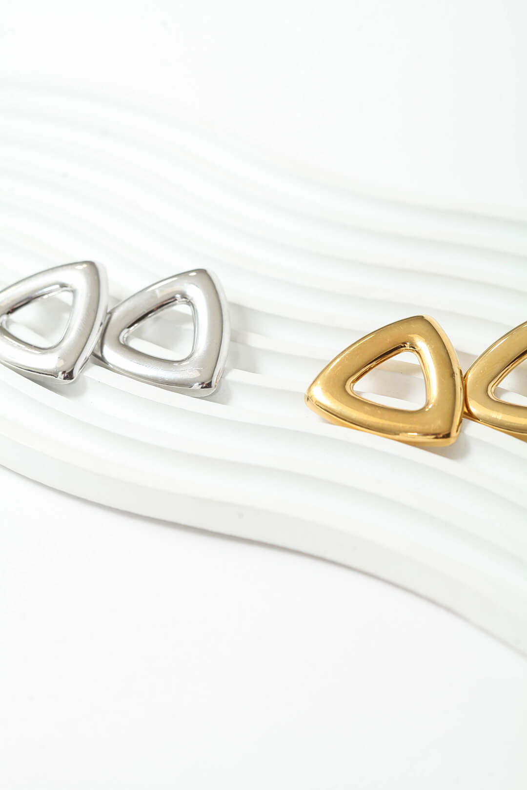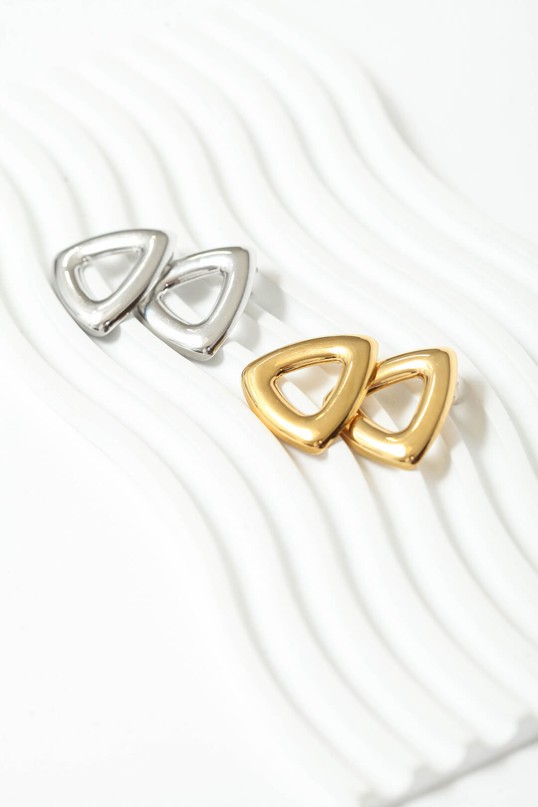 Γεωμετρικό, minimal και με μια διακριτική δυναμική που ταιριάζει σε κάθε εμφάνιση. Τρίγωνο από ανοξείδωτο ατσάλι, είναι το σκουλαρίκι που φοράς χωρίς να το σκέφτεσαι — και που όλοι παρατηρούν. Ανθεκτικό, υποαλλεργικό, διαχρονικό. Διατίθεται σε φυσική χρυσή ή ασημένια απόχρωση.
