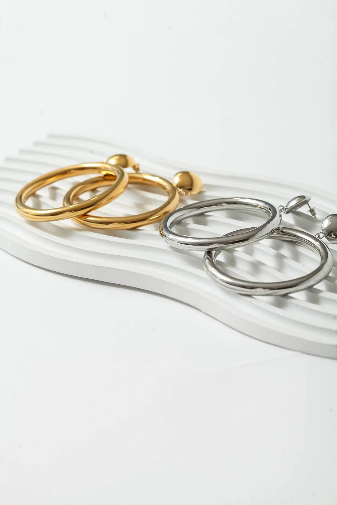 Σκουλαρίκια μεγάλος κρίκος, από ανοξείδωτο ατσάλι, ελαφρύς και υποαλλεργικός. Διατίθεται σε φυσική χρυσή ή ασημένια απόχρωση.